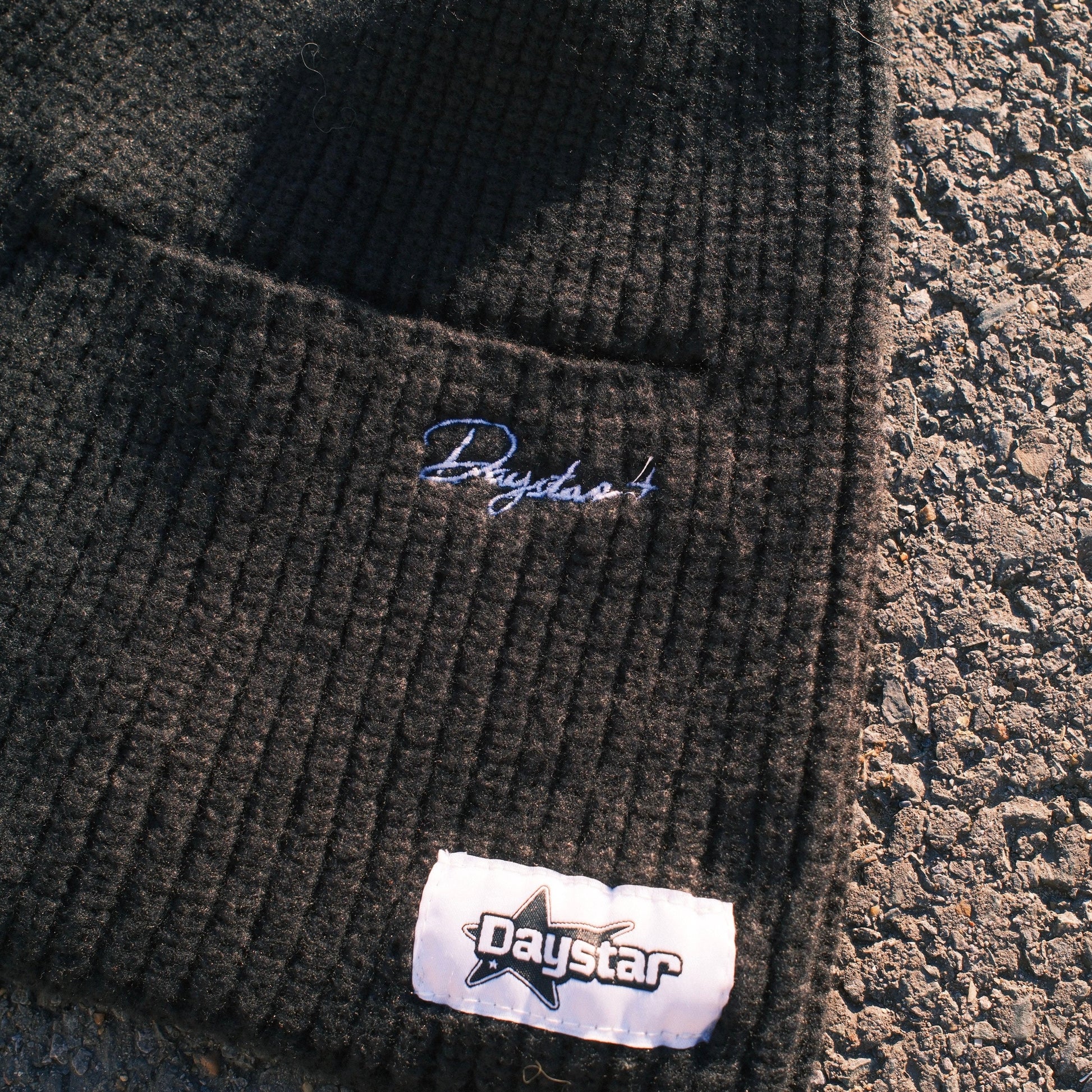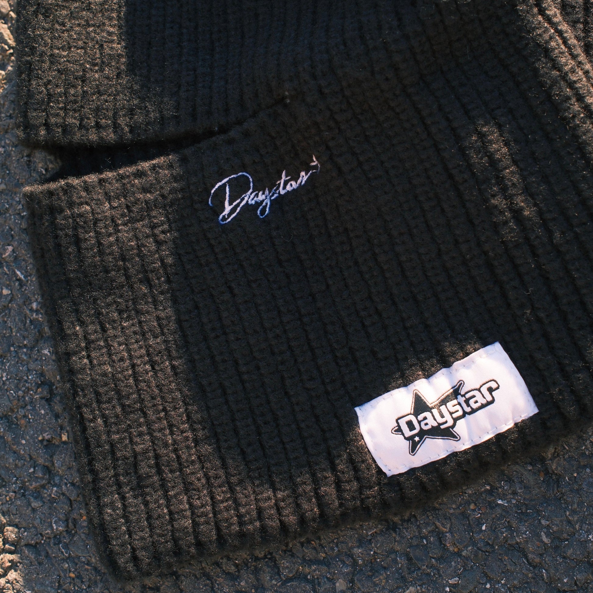 Daystar Balaclava Beanie offers two styles in one — wear it as a full balaclava or fold it for a classic cuffed beanie look. Crafted from soft, ribbed acrylic knit, this piece delivers comfort, warmth, and edge. Featuring contrast Daystar embroidery and a bold woven patch.