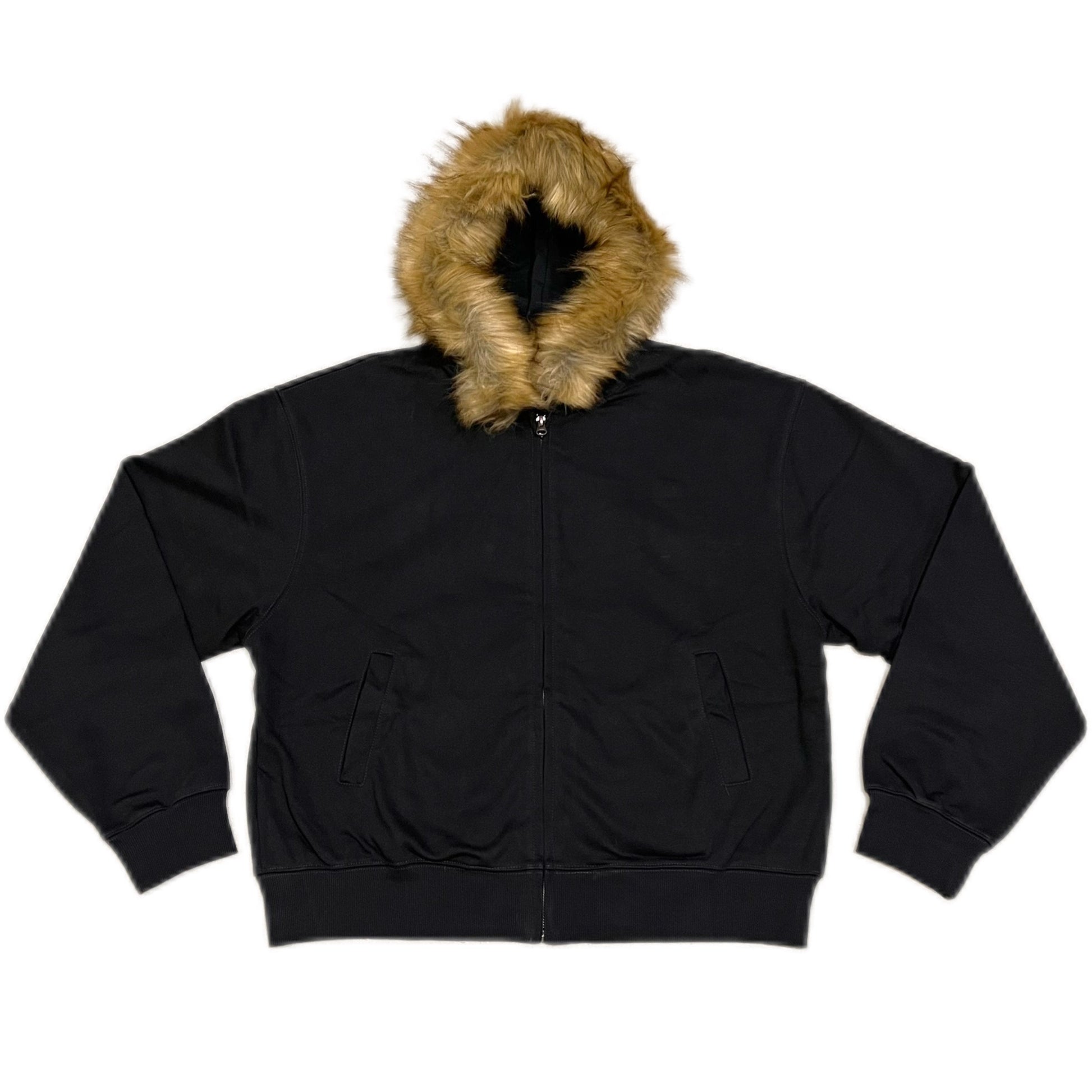 Stay warm and stylish with the Removable Fur Zip-Up Hoodie. Designed with a sleek black finish and a cozy faux fur-lined hood, this jacket offers the perfect balance of street style and cold-weather comfort. The detachable fur trim lets you switch up your look whenever you want.